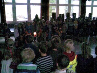 Heute Morgen haben sich alle Klassen in der Aula versammelt und gemeinsam Martinilieder gesungen. Einige Kinder sorgten mit ihren selbstgebastelten Laternen für eine stimmungsvolle Atmosphäre. ______________________________________________________________ |